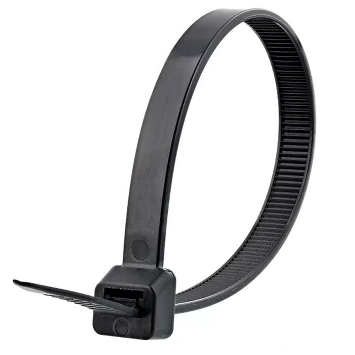 Produto feito de fibra Nylon sintética de alta resistência e termoplástico com base de poliamida PA66, ideal para lacrar, prender, fixar e também organizar fios, cabos e mangueiras.