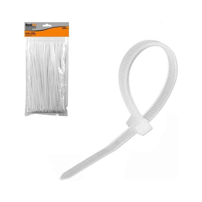 Abraçadeira De Nylon Branca 4,8X120Mm Com 100 Peças