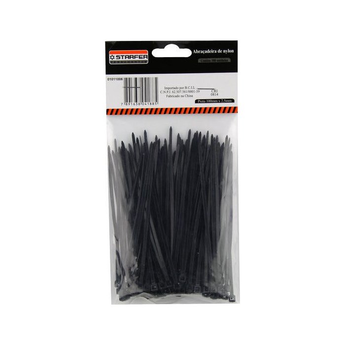 Abraçadeira Nylon Preta 150 X 2,5 Starfer Com 1000 Un. Preta