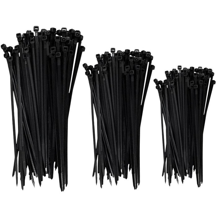 Abraçadeira Nylon Preta Enforca Gato 100 Un 4,8 X 100mm + 100 Un 4,8 X 200mm + 100 Un 4,8 X 300mm