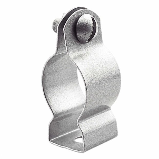 Fabricada em aço carbono, com acabamento galvanizado eletrolítico. Acompanha parafuso e porca.