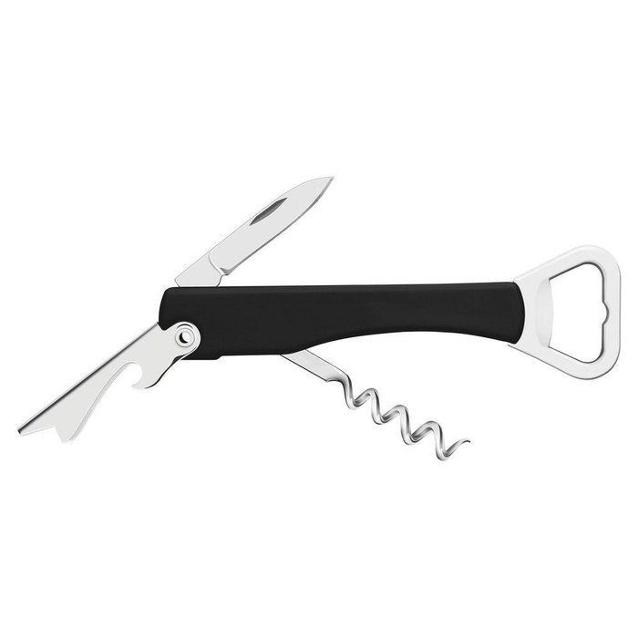 Abridor com Saca Rolhas e Canivete Harmoniza com Lâminas em Aço Inox e Corpo em Abs Preto