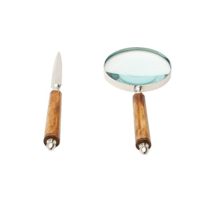 Esse lindo Abridor de Carta e Lupa com cabo em madeira é uma peça clássica que pode servir como um elegante objeto de decoração na mesa de trabalho ou escritório. Ideal para presentear.