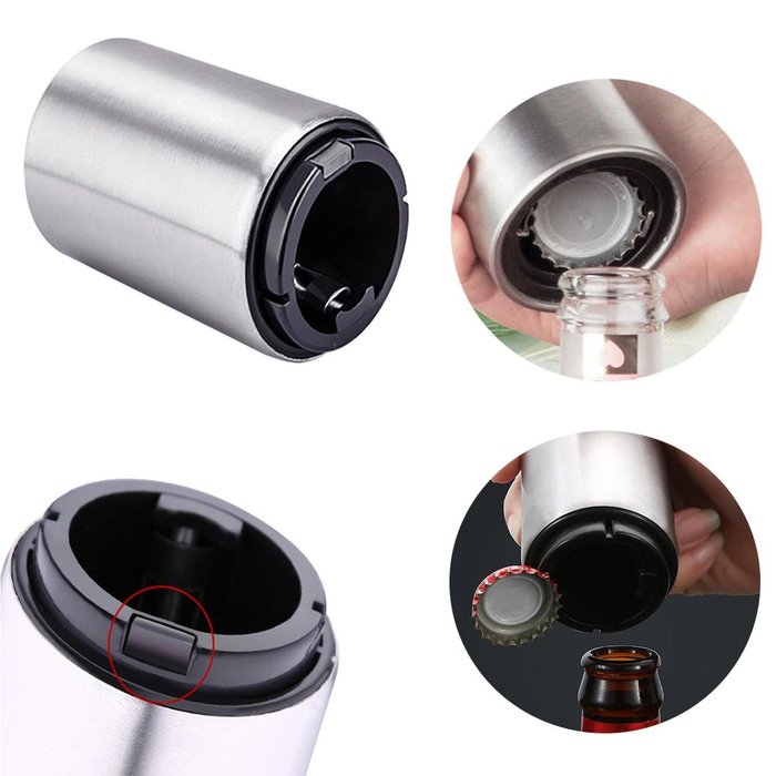 Abridor inovador, fácil, rápido, não entorta a tampa, ótimo para ter em casa, bares e restaurantes, automático e sem esforço. Basta colocar o abridor na garrafa e pressionar a parte superior do abridor. É muito fácil de usar.