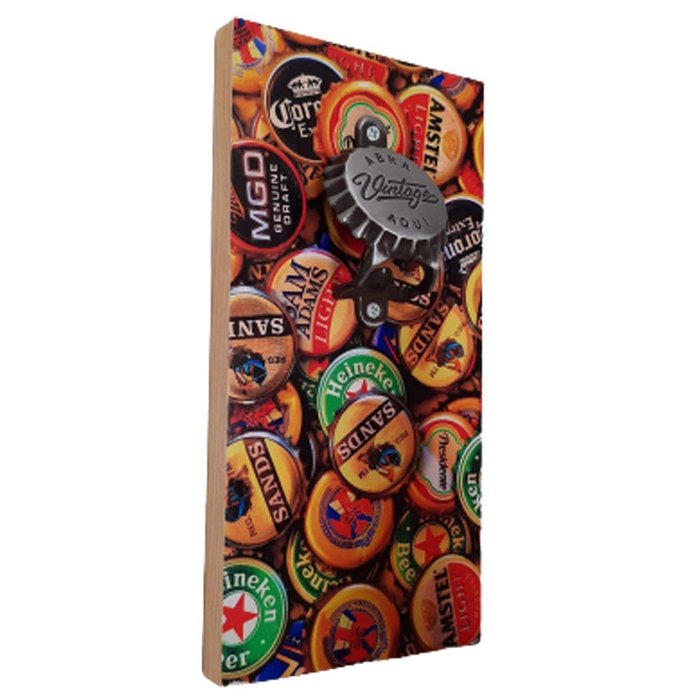 Abridor De Garrafas De Parede - Madeira Pinus - Com Imã - Vintage Adesivo Tampinha - 24x12cm