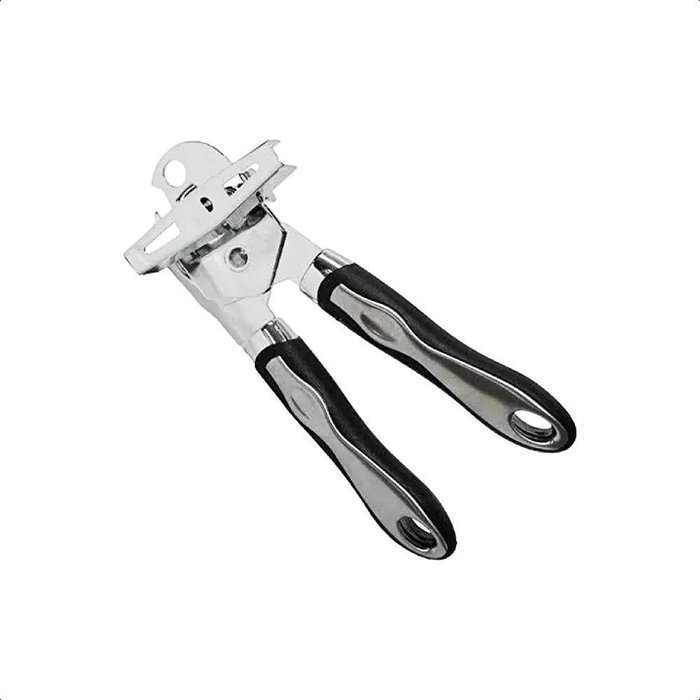 Abridor Latas Garrafas em Inox Manivela Cabo Emborrachado