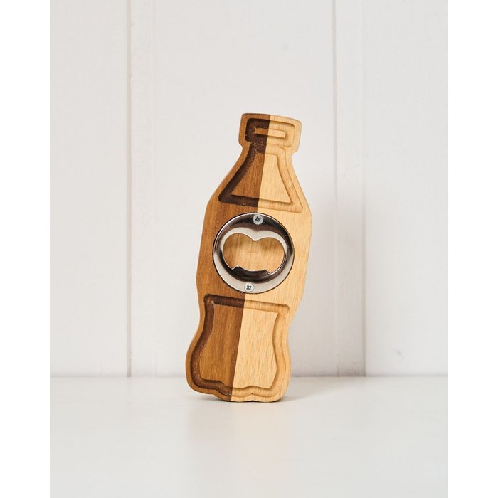 Formato clássico de garrafa KS (long neck) Madeira teca: durável, sustentável e resistente à umidade Abridor metálico embutido de alta qualidade Ideal para bares, áreas gourmet, kits de presente ou decoração Peça artesanal: variações naturais de tom e textura valorizam a exclusividade