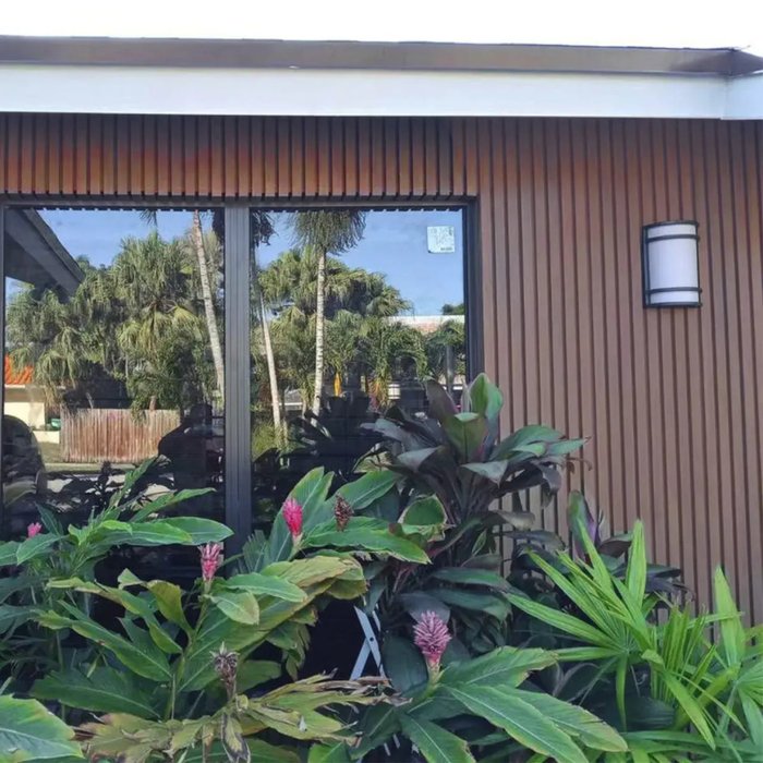 Produzida com o mesmo material e textura dos painéis ripados (WPC). Teak-B e Rosewood
