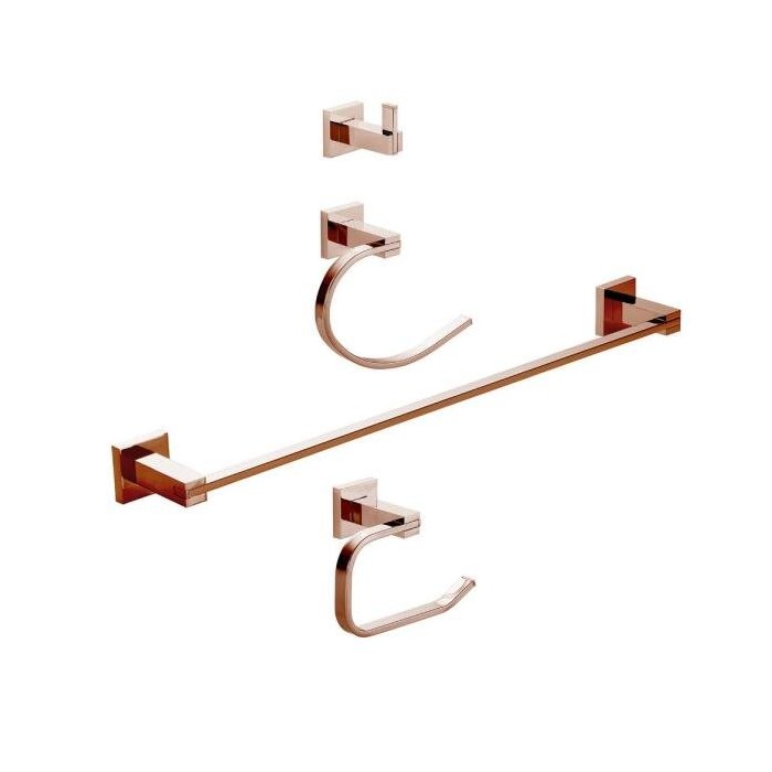 Acessórios para Banheiro Quadrado 4 peças São Francisco Pingoo.casa - Dourado rose