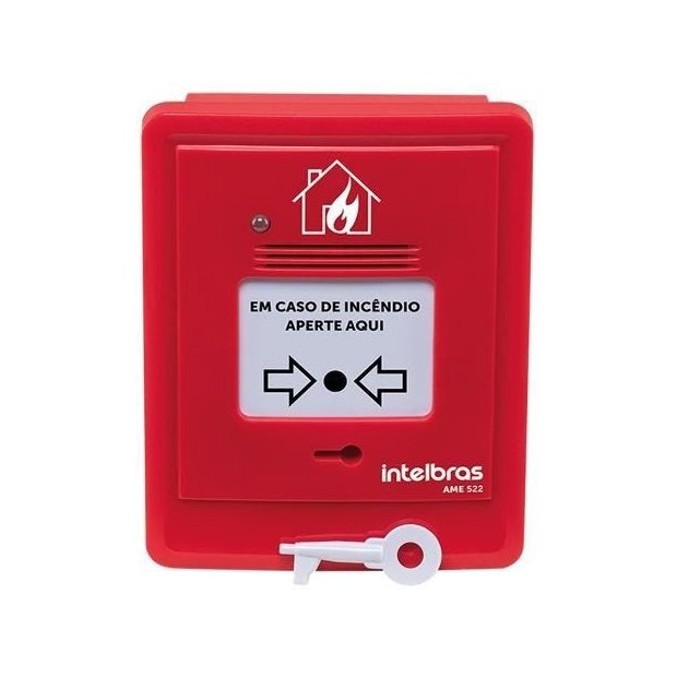 O acionador manual endereçável com sirene AME 522 possui design moderno e alta tecnologia, associados a eficiência, confiabilidade e facilidade de instalação. Pode ser instalado de três formas, embutido na parede, sobrepondo caixa 4x2 e eletroduto. Acionador manual endereçável do tipo rearmável Basta usar a chave de rearme após o acionamento e ele voltará a operar normalmente. Instalação facilitada, mais rápida e econômica Em 2 fios, você faz a instalação de um jeito bem simples e escolhe a forma que preferir: embutir na parede, sobrepor caixa 4x2 ou eletroduto. Muito mais seguro e resistente, até contra raios UV Resistente aos raios UV, esse produto não desbota facilmente com o passar do tempo, garantindo excelente durabilidade. Faça a integração de acordo com a sua necessidade Com saída de contato seco, você pode integrar esse produto a outras soluções, de acordo com a sua necessidade. » Tipo rearmável » Sobrepõe caixa 4x2 » Possui sirene convencional de alarme de incêndio » Possui saída contato seco » Possui LED bicolor indicativo de alarme e de funcionamento » Possui proteção Anti-UV » Acompanha chave de rearme Especificações técnicas: Tensão operacional 24 Vdc Limite operacional de tensão 21 a 28 Vdc Corrente em supervisão 3 a 4 mA Corrente em alarme 5 a 7 mA Tipo Rearmável Classe de instalação A ou B Instalação 2 fios do laço, com polaridade Faixa de endereços 1 a 250 Saída de contato seco Máx. 0,1 A @ 30 V ? NA Temperatura de operação -10 a 50 °C Umidade relativa < 95% não condensada Instalação em ambientes Internos Sirene Sim > 90 dB Cor Vermelho Material ABS com proteção UV Dimensões (L × A × P) 100 × 130 × 48 mm Peso 155 g