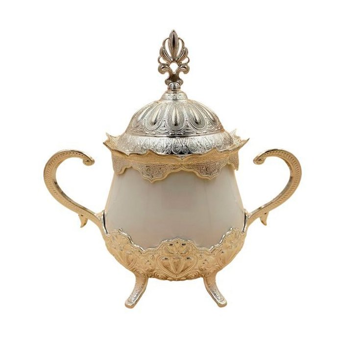 Açucareiro Elegante em Porcelana - Açucareiro Branco de Porcelana e Metal Prateado :