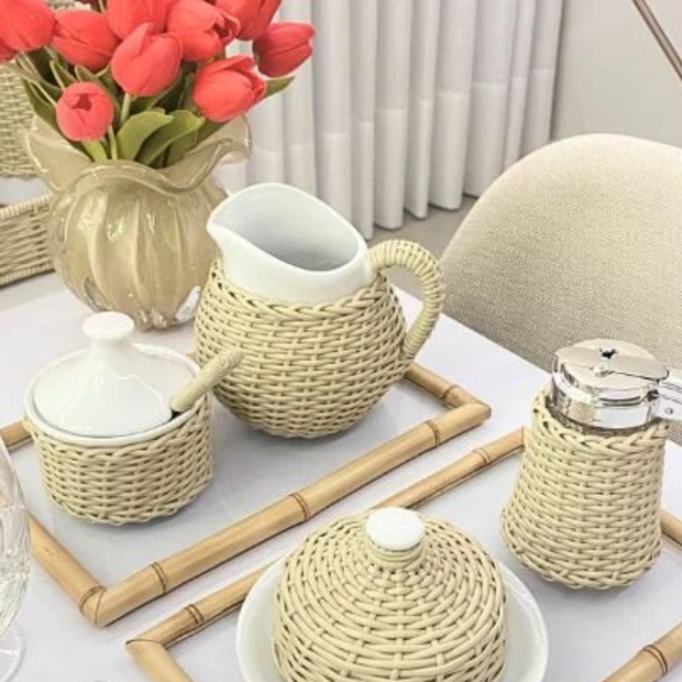 Para decorar sua cozinha e ainda deixar seu dia a dia bem mais prático, o Açucareiro de Porcelana com Vime Fendi é perfeito. Com design inovador e super decorativo, pode ser usado também como porta condimentos, facilitando na hora do preparo das refeições.