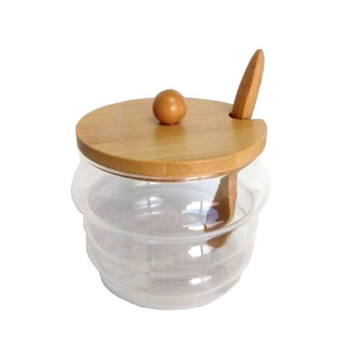 AÇUCAREIRO EM VIDRO TAMPA E COLHER EM BAMBU - YOI