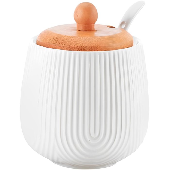 Açucareiro Oásis Branca em Cerâmica com Colher e Tampa em Bambu 360ml