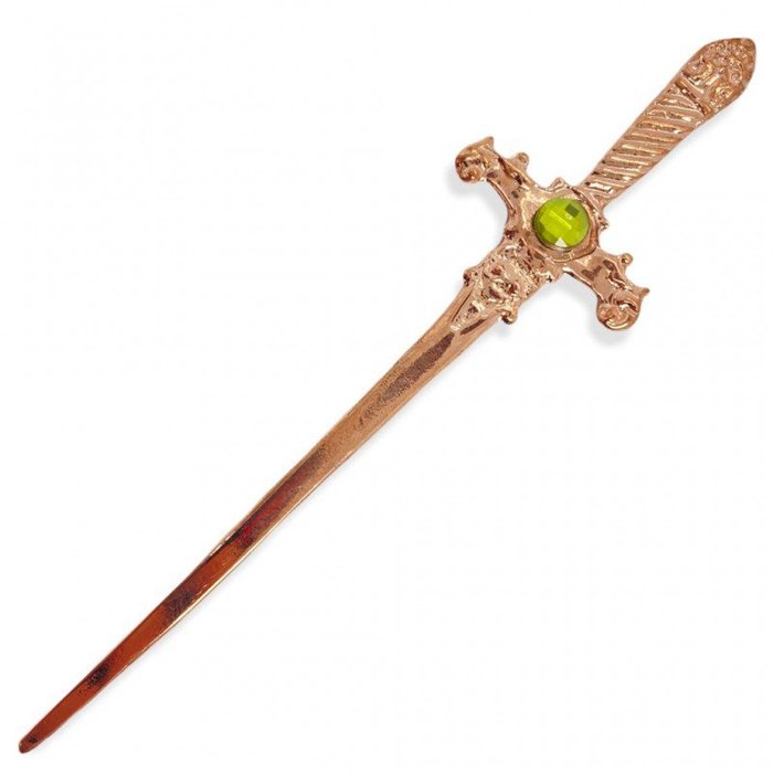 Adaga Cigana em Metal Cobre Brilho 15 cm Pedra Verde