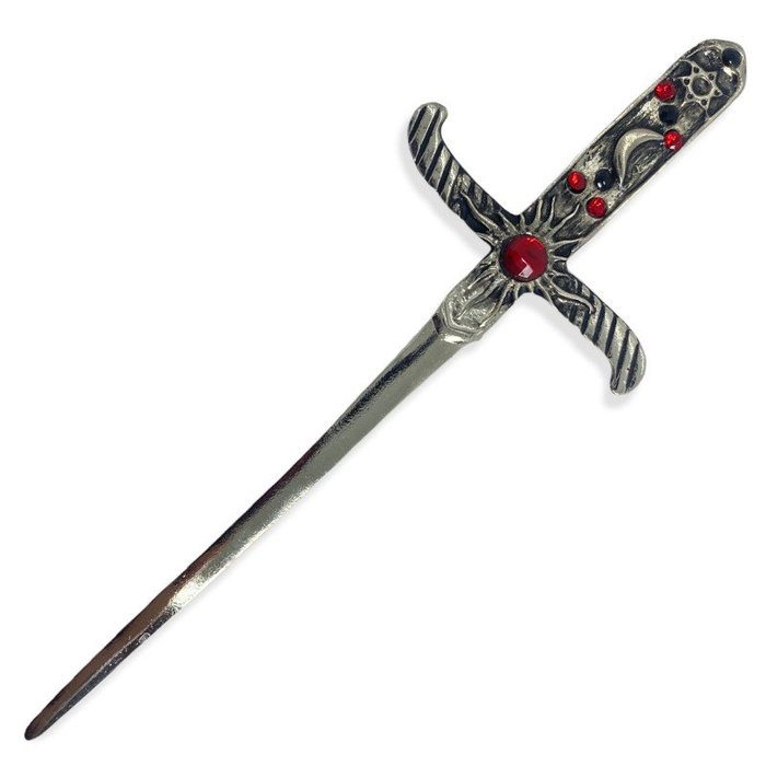 Adaga Cigana Metal Prata Velha 19 cm Pedra Vermelha e Preta Prata velha com pedras vermelhas e pretas
