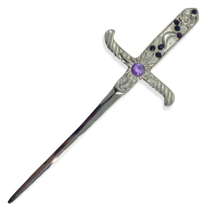 Adaga Decorativa Metal Prata Brilho 19 cm Pedra Lilás Prata brilho com pedras lilás