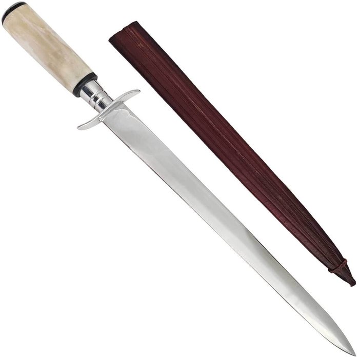 Adaga Punhal Afiado em Aço Inox 420 Hickmann Cabo de Osso 14 polegadas Bainha Couro