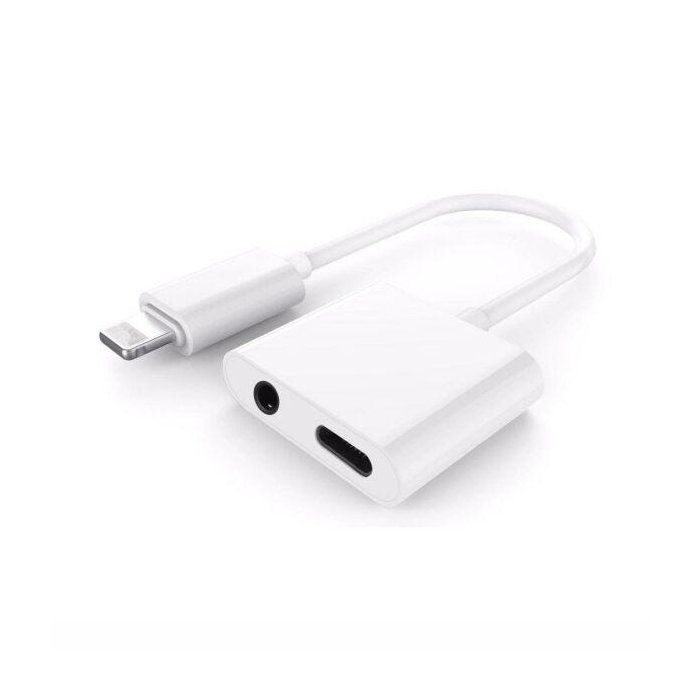 Adaptador 2 em 1 iPhone e iPad 8 pinos para Fone de Ouvido e Cabo 8 pinos