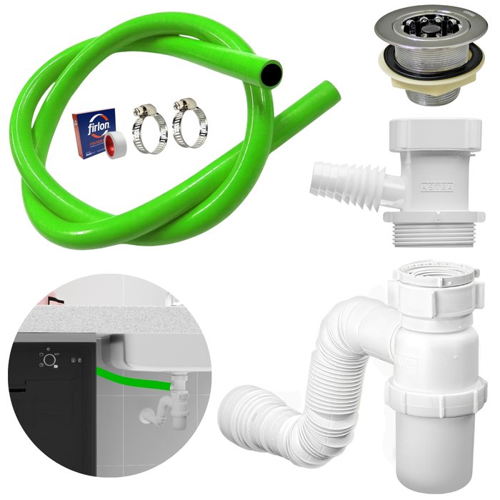 Adaptador para Máquina de Lavar Louça + Mangueira + Válvula Americana + Sifão Copo Universal + Abraç