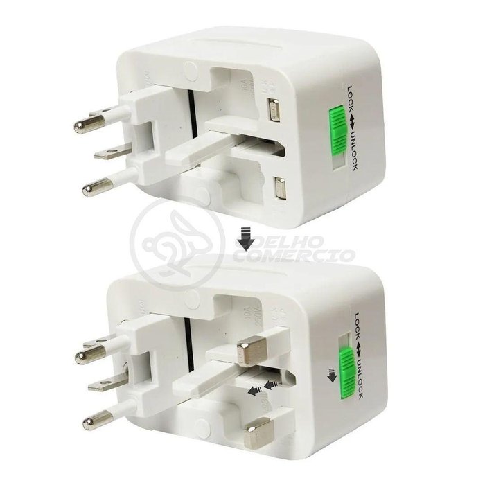 Adaptador Tomada Universal Padrão 150 Países Uk Europa Eua Asia Viagem Bivolt 110/220 Bivolt Aio