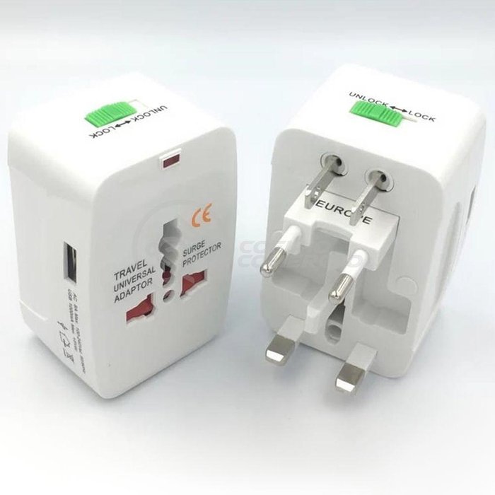 Adaptador Tomada Universal Padrão 150 Países Uk Europa Eua Asia Viagem Bivolt 110/220 Bivolt Aio