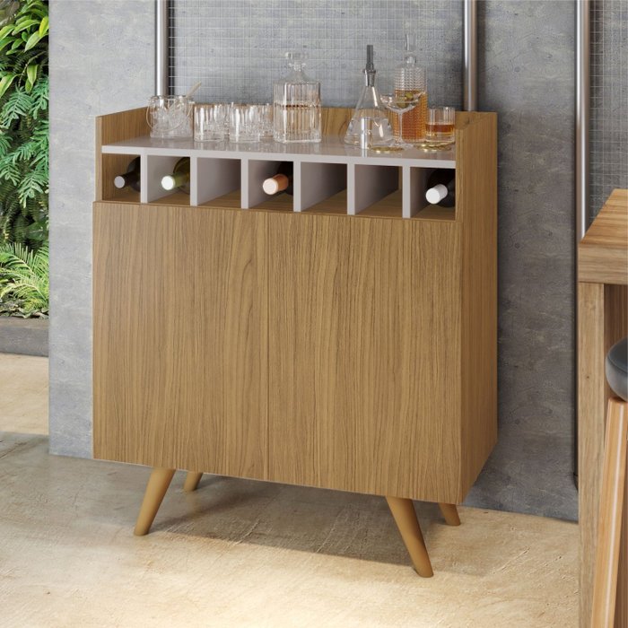Adega Bar com Bandeja 2 Portas Empório JCM Móveis Freijó/Off White