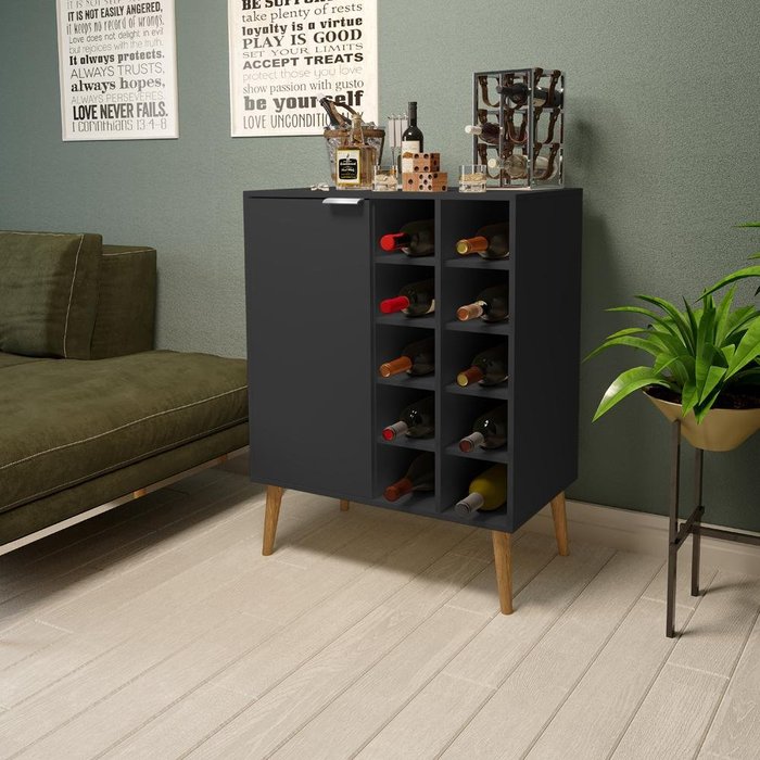 Adega Bar para 10 Garrafas Miami Preto - Rede Móveis