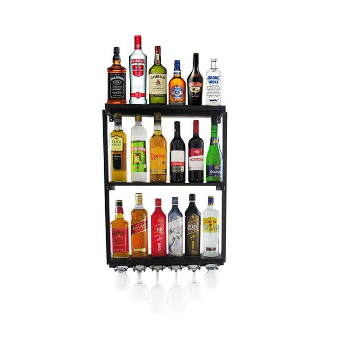 Adega Bar Suspensa em MDF para 18 Garrafas e 6 Taças - Preto