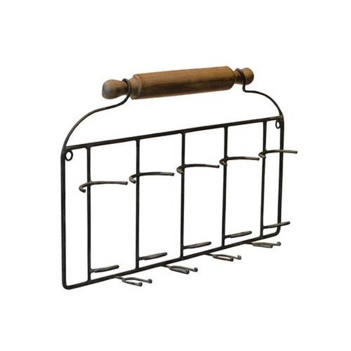 Adega de Parede Rolo em Ferro para 5 Garrafas e 4 Taças