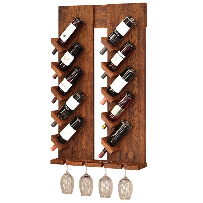 Adega De Parede Rústica Kansas Madeira Maciça 10 Garrafas Suporte Para Taças W02 Imbuia - Lyam
