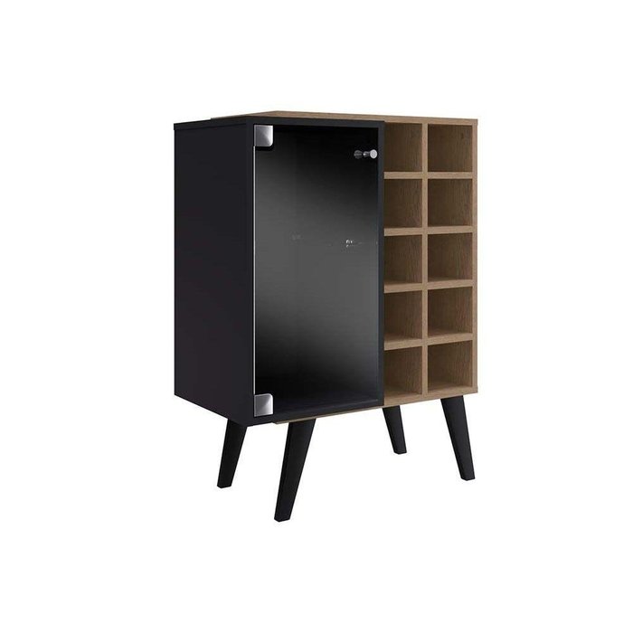Adega de Sala Jantar Bar Capri 1 Porta c/ Vidro Brunne/Preto - Genialflex