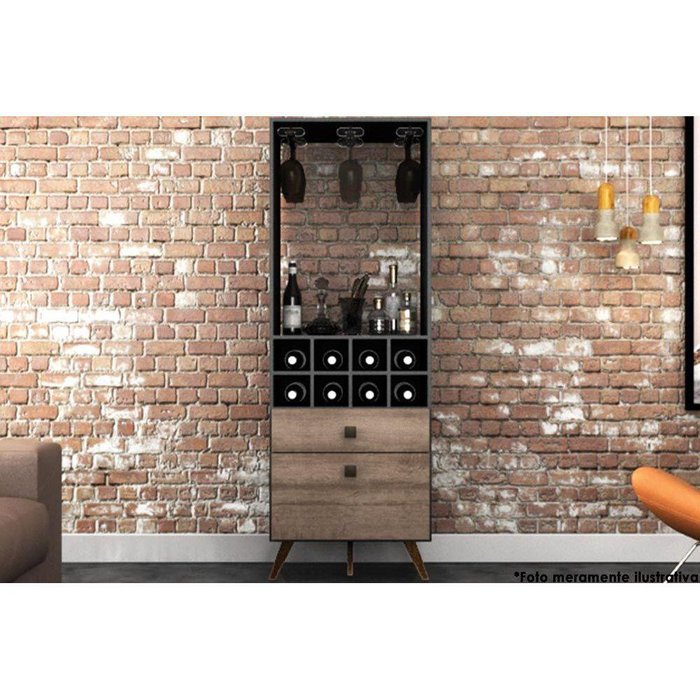 Adega de Sala Jantar RT 3090 Bar p/ 8 Garrafas Preto/Rustico - Movelbento
