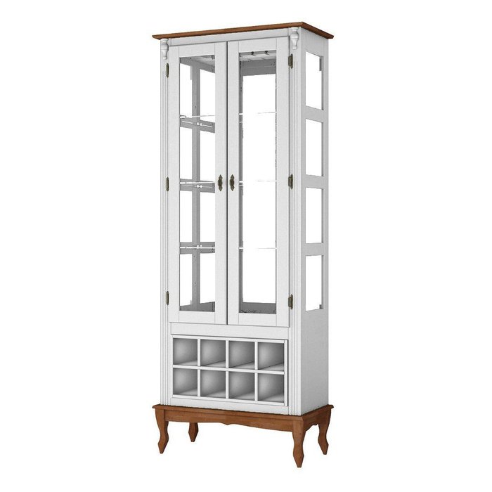 Adega e Cristaleira Colonial com 2 Portas de Vidro e Pés Luiz Xv - Branco Tampo e Base Imbuia Glazer