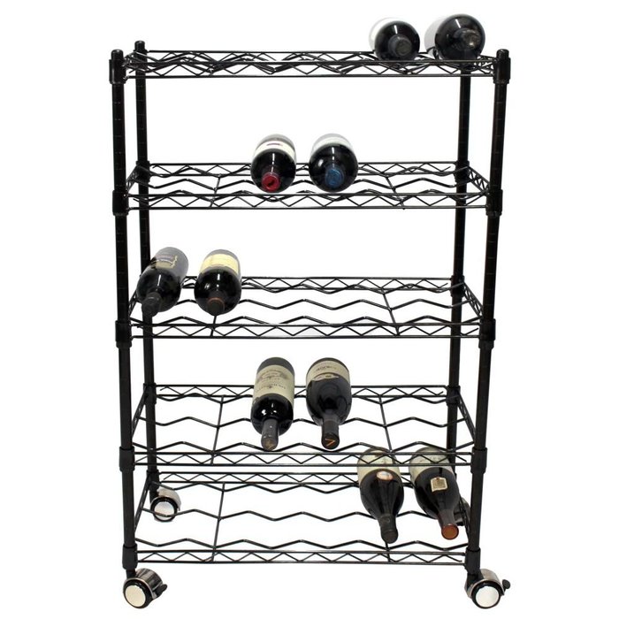 Adega Estante Arame Aço Preto 3 Prateleiras 27 Garrafas Vinho Montável Decoração Preta