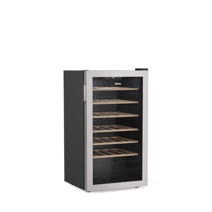 O modelo possui capacidade de 34 garrafas (padrão Bordalesa), e opera na temperatura de 5 °C a 20 °C, permitindo o armazenamento de qualquer tipo de vinho. Conta com porta em aço inoxidável, prateleiras em madeira e tecnologia Low-E, que minimiza a entrada de luz UV, protegendo o vinho e reduzindo o acúmulo de umidade na porta. É perfeita para compor o ambiente ao lado da Beer Center Invita Inox 85 litros, garantindo um design uniforme ao projeto.