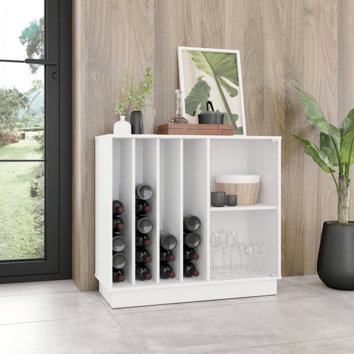 Seu cantinho vai ficar ainda mais moderno com adega para 28 garrafas com porta de vidro BBA 05- BRV MOVEIS. Produzido em MDP 15mm que proporciona uma maior durabilidade com acabamento em BP. A-81,5 X L-90 X P-35 – Peso bruto: 21,7kg. Produto ideal para compor o seu ambiente. Características - MDP 15 MM; -Acabamento BP; -Branco -Suporta 28 garrafas -Porta de vidro -1 Prateleira Garantia de 3 Meses (contra defeito de fabricação). OBSERVAÇÕES As dimensões estão expressas na seguinte forma – Altura x Largura e Profundidade em cm. Não expor o móvel a fontes de calor ou de umidade. As imagens indicam uma sugestão de uso e são apenas ilustrativas, os objetos decorativos não estão inclusos.