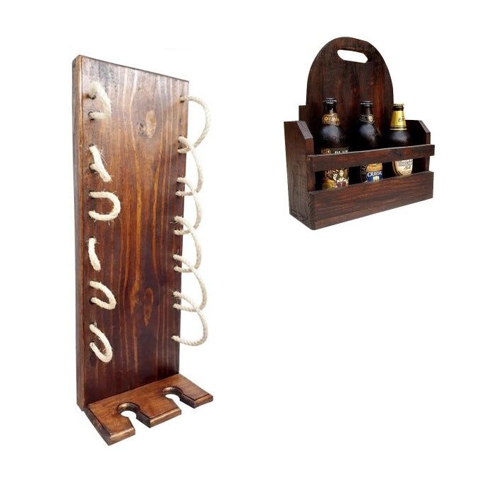 Cesta Artesanal Porta Bebidas Art Madeira Marrom para cerveja, versátil e portátil. Com capacidade para até 3 garrafas de cerveja, pode ser fixado na parede caso queira ou apenas transporta-lo com sua alça ergonômica. Fabricado 100% artesanalmente em madeira pinus.