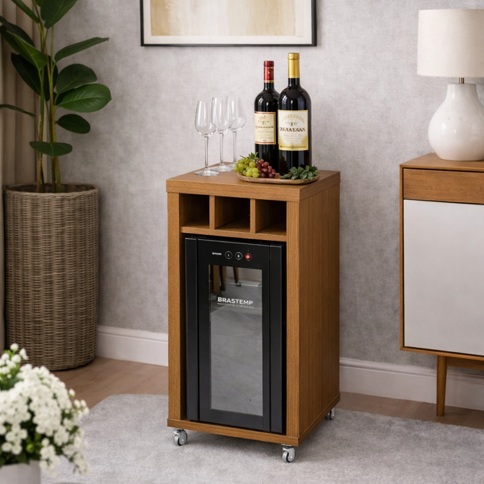 Adegueira Bancada Embutir Adega Vinhos com Rodízios:freijo