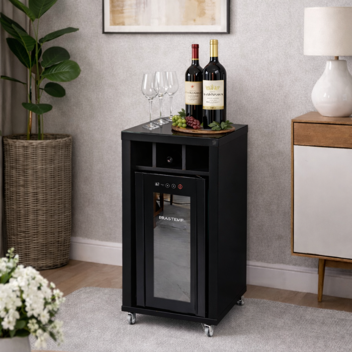 Adegueira Bancada Embutir Adega Vinhos com Rodízios Preto PRETO