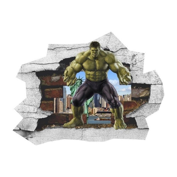 Adesivo 3D Buraco na Parede O Increvel Hulk Marvel Vingador