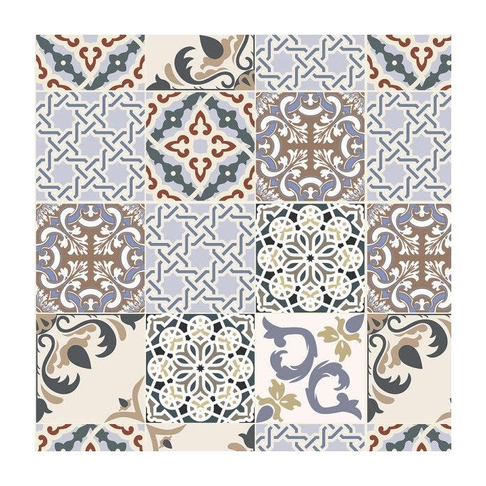 Adesivo Azulejo em tons azul, bege, marrom, cinza, e preto para Área Gourmet