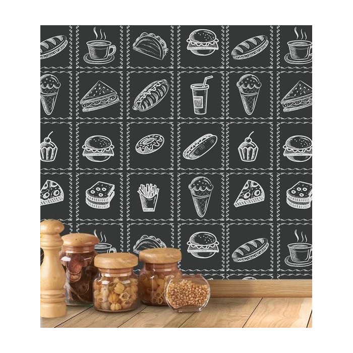 Adesivo Azulejos Retro Lanche Giz Preto e Branco