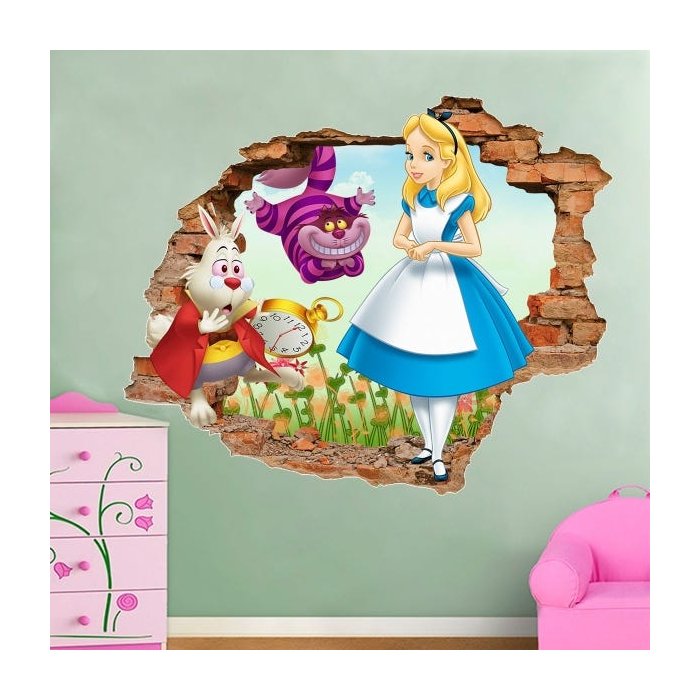 Adesivo Buraco Falso 3D Alice no País das Maravilhas - G 82x100cm