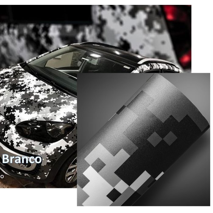 Adesivo Camuflado 1,38m X 25cm Pixel Branco
