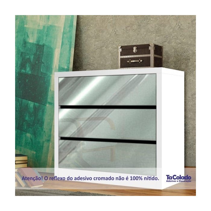 Adesivo Cromado Prata. Produto autoadesivo, dispensa o uso de cola. Adesivo de alta qualidade com acabamento cromado liso, não apresenta relevo ou textura. Disponível em rolos com a largura de 1,00 m e diversos comprimentos a sua escolha. Obs: Produto não aceita curvas complexas. Importante: Confira as medidas do local e calcule quantos rolos são necessários antes de efetuar a compra, pois podem ocorrer variações de cores entre os lotes. Você pode colar em superfícies lisas como: Paredes de massa corrida, gesso, tinta acetinada, látex e acrílica. Azulejos, divisórias, fórmica, MDF, portas, vidros, espelhos, moveis e eletrodomésticos. Limpeza e Conservação Antes de Colar: Limpe o local com pano seco para retirar poeira e impurezas. Depois de colado: Pano macio umedecido em água e detergente neutro (não utilize abrasivos ou produtos com solvente). Brinde Acompanha 1 (uma) Espátula de Aplicação de brinde na compra de rolos de 5 metros em diante, sendo que será enviada apenas uma espátula por compra, independentemente do número de rolos adquiridos. Observação O tom da cor do material pode variar da cor vista na tela devido a configuração de cores do seu monitor.