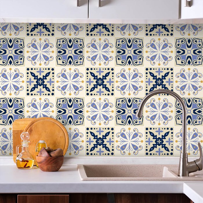 Adesivo de Azulejo Hidráulico Bege e Azul 2 Arte Destaque