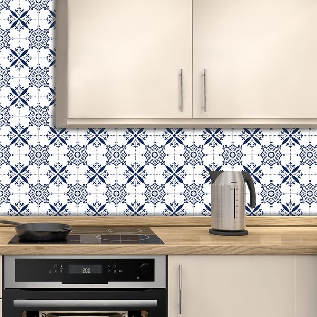 Os adesivos de azulejo são a opção perfeita para decorar um ambiente de forma rápida e simples. São muito usados em cozinha, banheiro e áreas de serviço, mas pode, de uma forma geral, ser usada em diversos ambientes. O tamanho de cada azulejo dentro do desenho é de 15x15cm e o rolo possui 60x120cm.