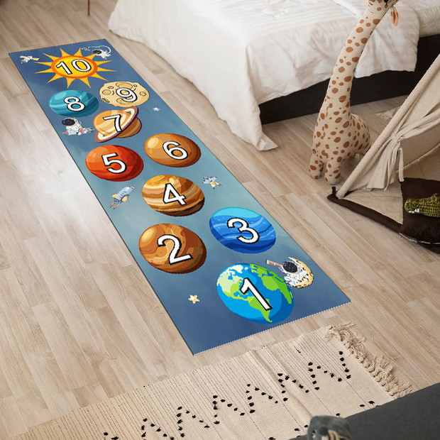O modelo de amarelinha com números proporciona uma maneira lúdica de ensinar contagem e promover a atividade física entre as crianças. Feito de material adesivo autocolante, é fácil de aplicar em superfícies lisas, garantindo durabilidade e praticidade no uso diário.