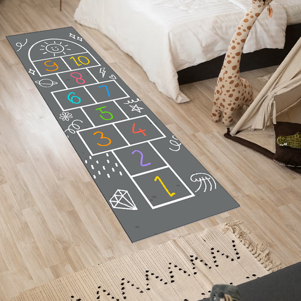 O modelo de amarelinha com números proporciona uma maneira lúdica de ensinar contagem e promover a atividade física entre as crianças. Feito de material adesivo autocolante, é fácil de aplicar em superfícies lisas, garantindo durabilidade e praticidade no uso diário.